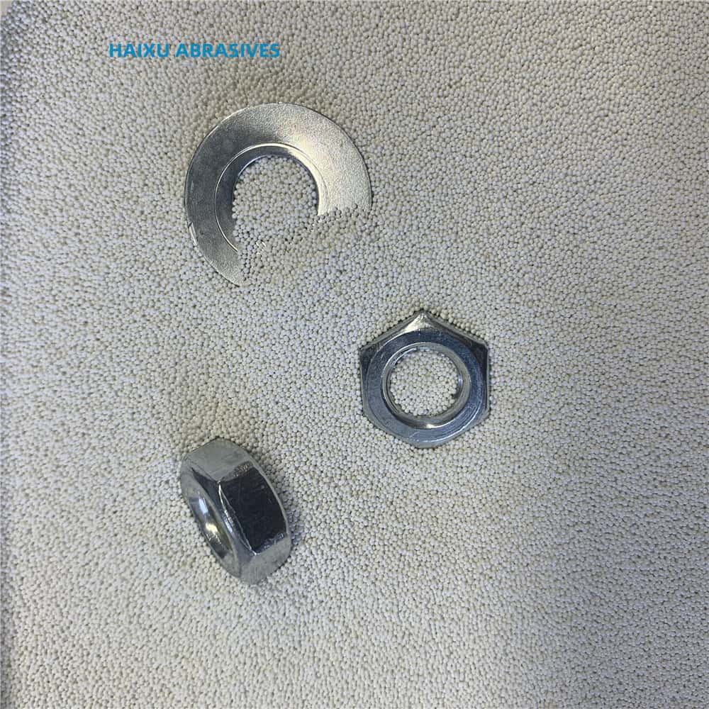 陶瓷砂的主要成分是氧化锆,主要用于喷砂、喷丸等表面处理。陶瓷砂的生产过程是将高品质进口的锆英砂经过高温熔融成液体,然后喷吹成球。制成的氧化锆陶瓷球体经过筛分、磁选去除杂质得到高圆度、高强度、粒度均匀的颗粒。陶瓷砂的球状颗粒在喷砂过程中能达到更好的表面光亮度,而工件本身不变色。广泛用于航空部件、不锈钢板材、结构件、不锈钢厨具、医疗器件、手机/手提电脑外壳、汽车底盘/发动机、运动器材等行业的喷砂和表面处理。