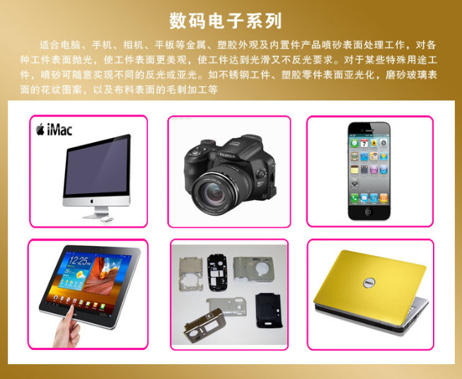 数码类:电脑、手机、相机、平板等金属、塑胶外观及内置件,表面精饰处理。